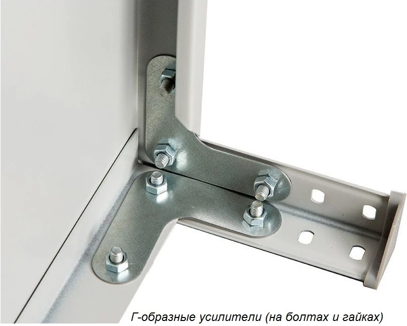 - Рекомендуется использовать дополнительные усилители ребра полки (повышают нагрузку на полку до 160 кг). Устанавливать, начиная с нижней полки.