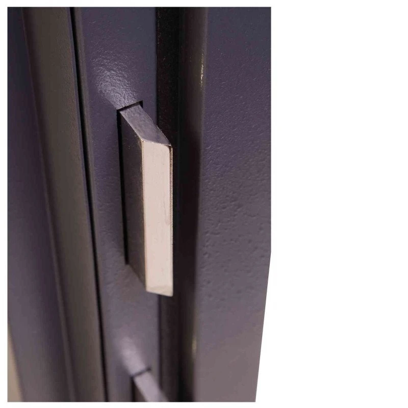 - Сейф HS2055E оборудуется четырёхсторонним ригельным механизмом, представленным десятью прямоугольными стальными ригелями 100×10 мм – выдвигающимися с трёх сторон, а также пассивными (неподвижными) со стороны петель.
