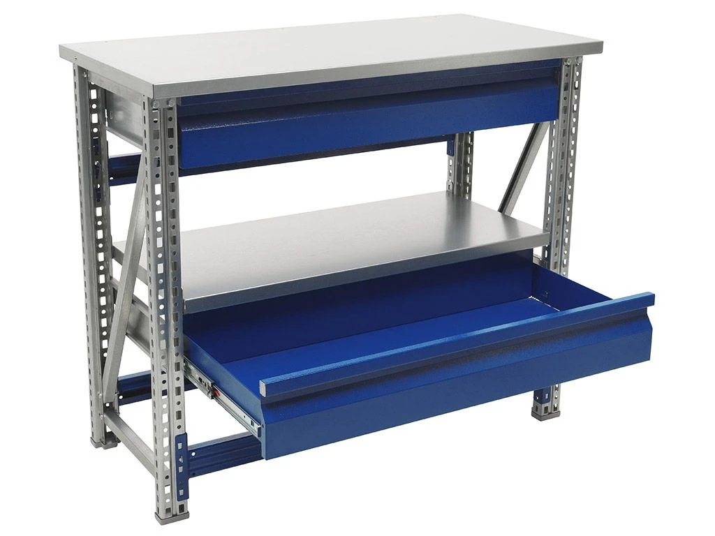 - Основные элементы верстаков изготовлены из оцинкованной стали, что позволяет устанавливать их в местах с повышенной влажностью.