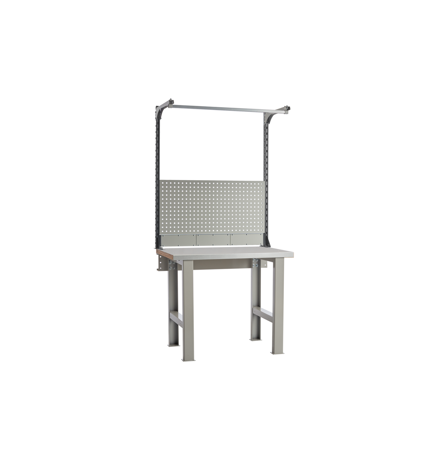 - Все металлические элементы верстака окрашены эпоксидной порошковой краской. Цвет агатово-серый RAL 7038. Такая краска защищает изделие от сколов, мелких царапин и предотвращает появления коррозии.