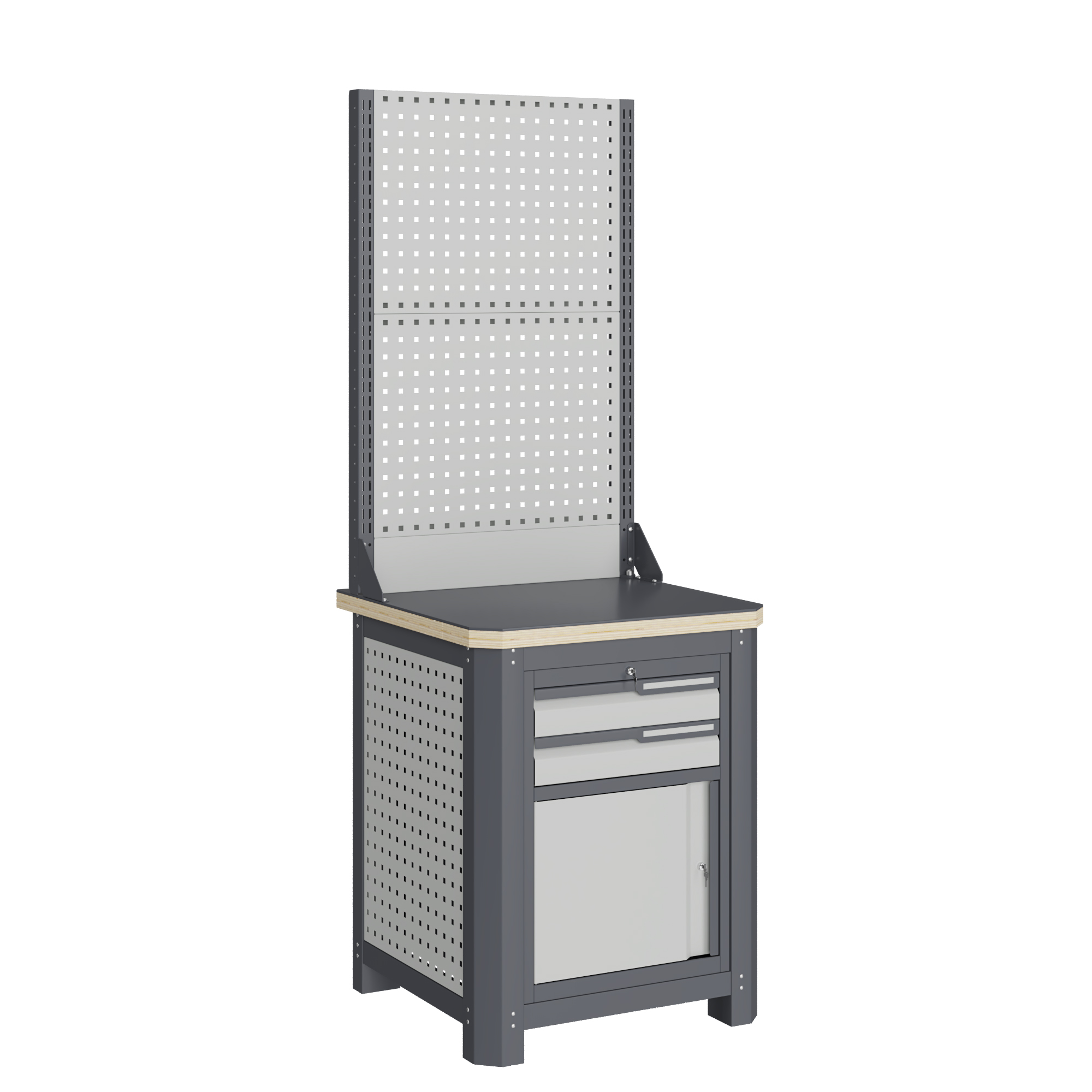 Модуль верстака имеет сварную конструкцию из профилированной стали с центральным ключевым замком.
